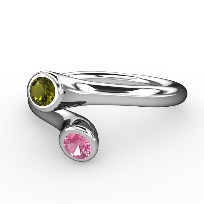 Peridot ve pembe kuvars 18 ayar beyaz altın yüzük
