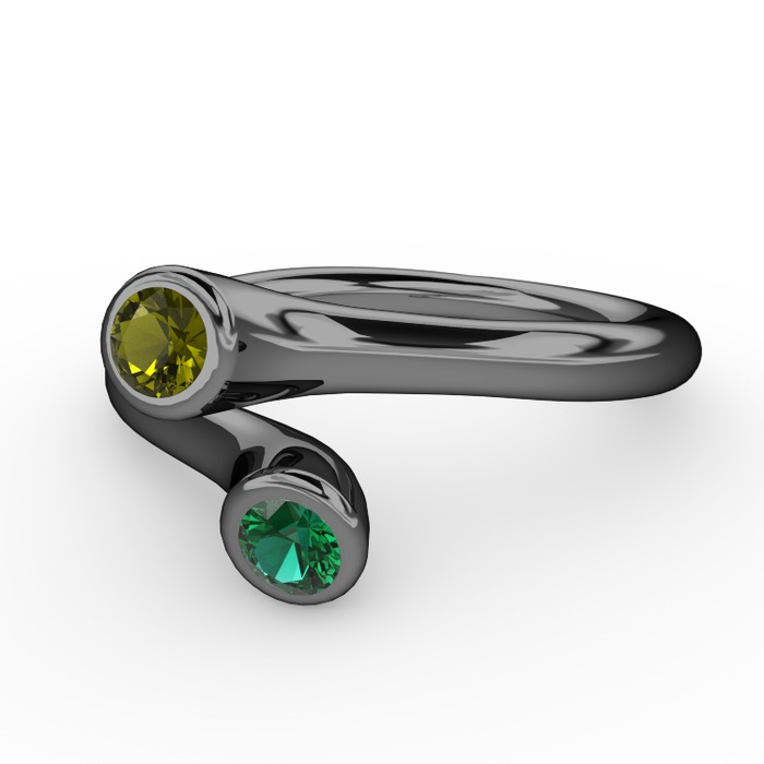 Peridot ve yeşil kuvars 925 ayar siyah rodyum kaplama gümüş yüzük