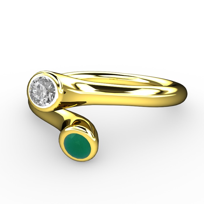 Pırlanta ve kök zümrüt 925 ayar altın kaplama gümüş yüzük (0.04 karat)