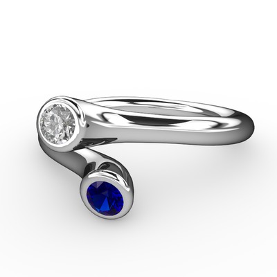 Pırlanta ve lab safir 14 ayar beyaz altın yüzük (0.04 karat)