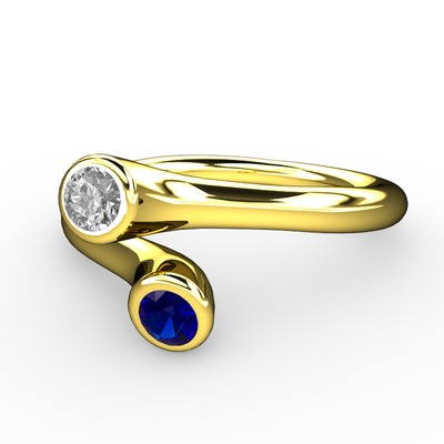 Pırlanta ve lab safir 925 ayar altın kaplama gümüş yüzük (0.04 karat)