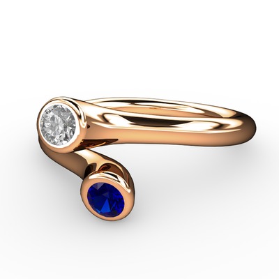 Pırlanta ve lab safir 925 ayar rose altın kaplama gümüş yüzük (0.04 karat)