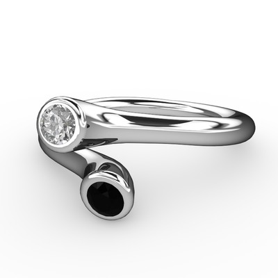 Pırlanta ve siyah zirkon 14 ayar beyaz altın yüzük (0.04 karat)