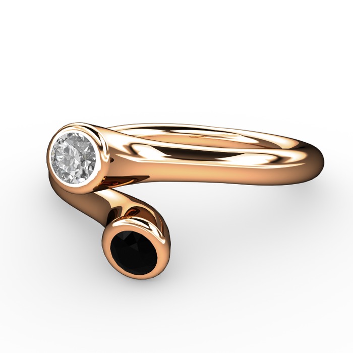 Pırlanta ve siyah zirkon 18 ayar rose altın yüzük (0.04 karat)