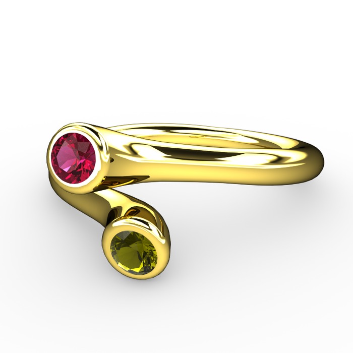 Rodolit garnet ve peridot 14 ayar altın yüzük