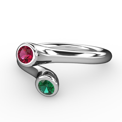 Rodolit garnet ve yeşil kuvars 18 ayar beyaz altın yüzük