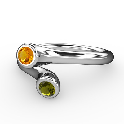 Sitrin ve peridot 8 ayar beyaz altın yüzük