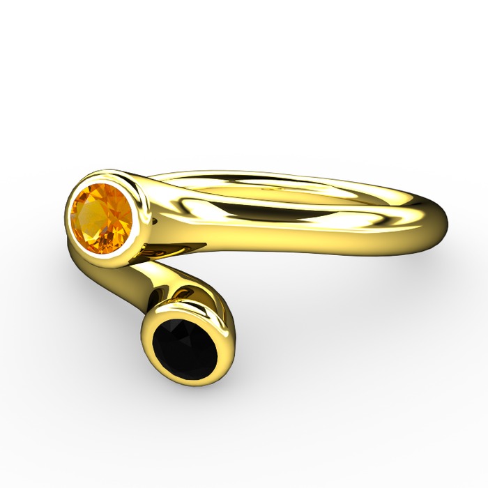 Sitrin ve siyah zirkon 14 ayar altın yüzük