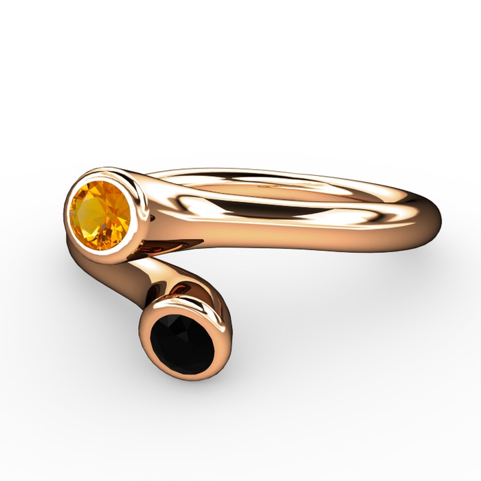 Sitrin ve siyah zirkon 18 ayar rose altın yüzük