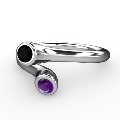 Siyah zirkon ve ametist 925 ayar gümüş yüzük