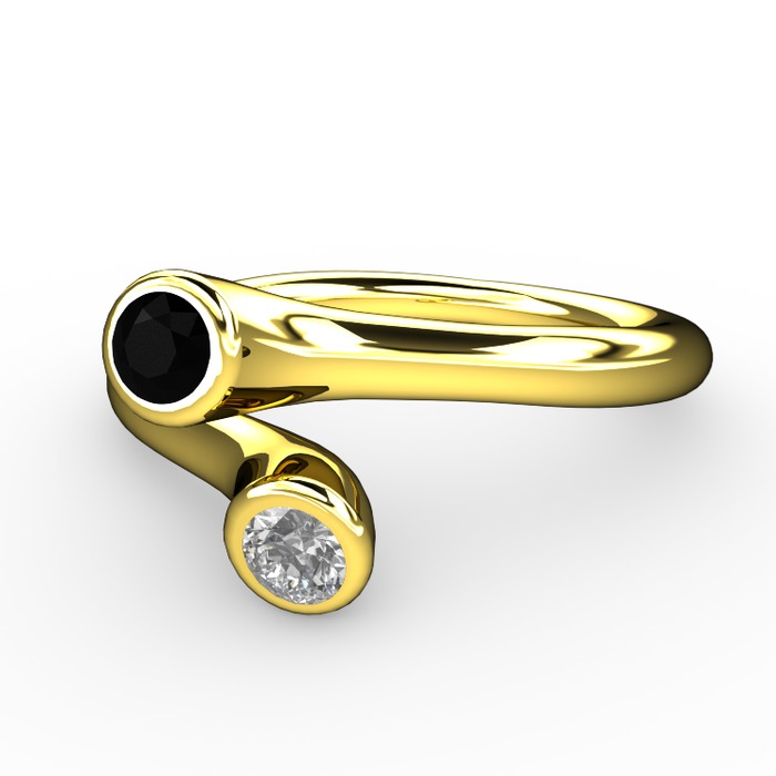 Siyah zirkon ve pırlanta 18 ayar altın yüzük (0.04 karat)