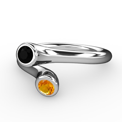 Siyah zirkon ve sitrin 8 ayar beyaz altın yüzük