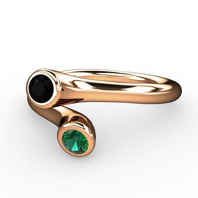 Siyah zirkon ve yeşil kuvars 18 ayar rose altın yüzük