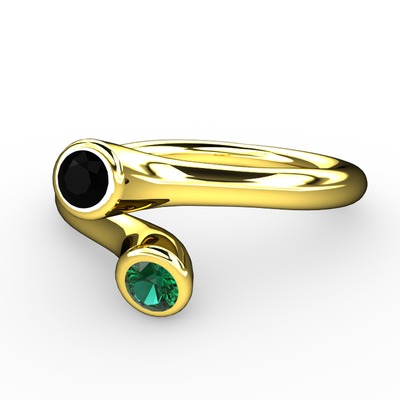 Siyah zirkon ve yeşil kuvars 925 ayar altın kaplama gümüş yüzük
