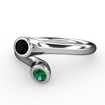 Siyah zirkon ve yeşil kuvars 925 ayar gümüş yüzük