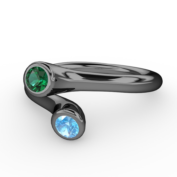Yeşil kuvars ve akuamarin 925 ayar siyah rodyum kaplama gümüş yüzük