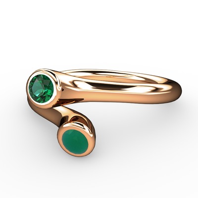 Yeşil kuvars ve kök zümrüt 8 ayar rose altın yüzük