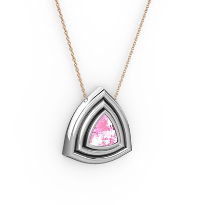 Pembe kuvars 925 ayar gümüş kolye (40 cm rose altın rolo zincir)