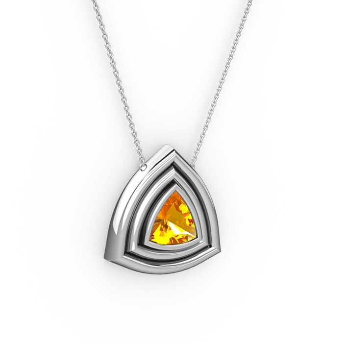 Sitrin 14 ayar beyaz altın kolye (40 cm gümüş rolo zincir)
