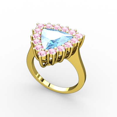 Akuamarin ve pembe kuvars 8 ayar altın yüzük