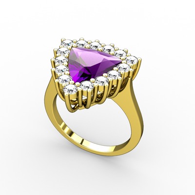 Ametist ve beyaz zirkon 18 ayar altın yüzük
