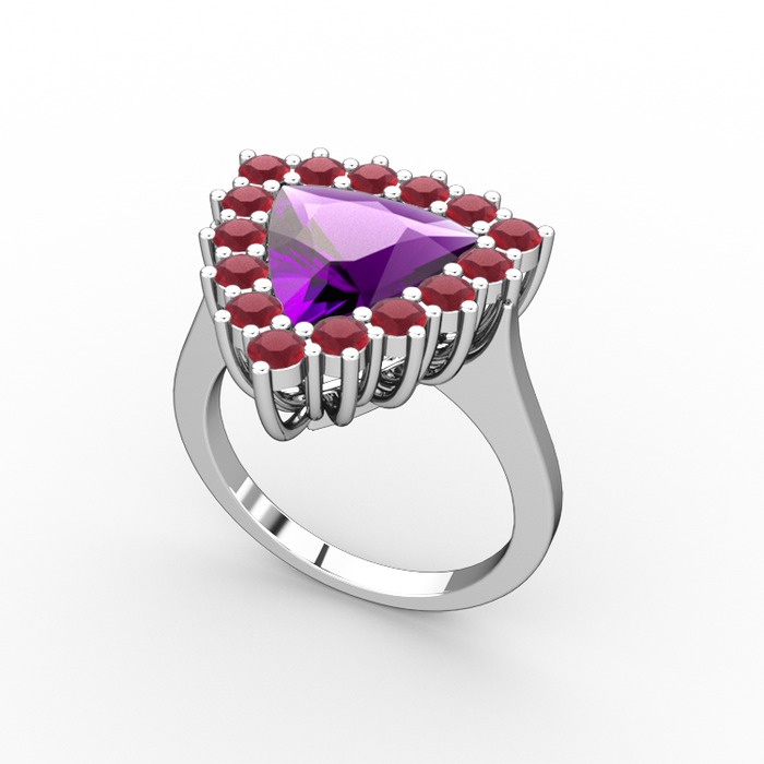 Ametist ve kök yakut 925 ayar gümüş yüzük