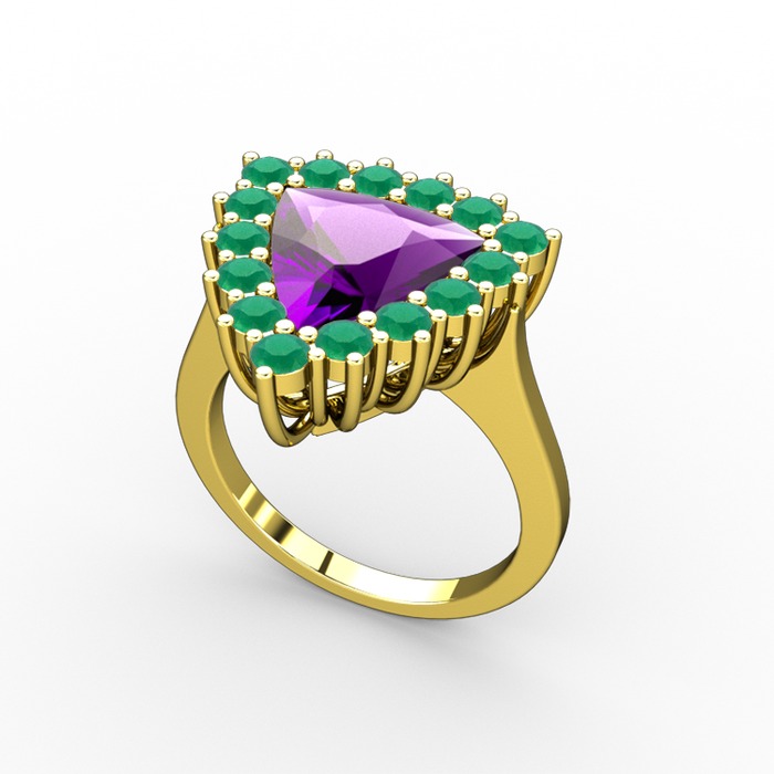Ametist ve kök zümrüt 18 ayar altın yüzük