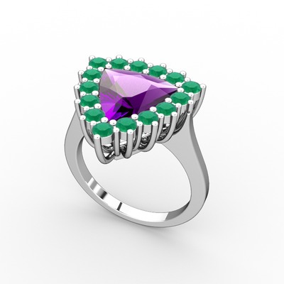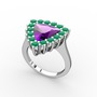 Ametist ve kök zümrüt 18 ayar beyaz altın yüzük