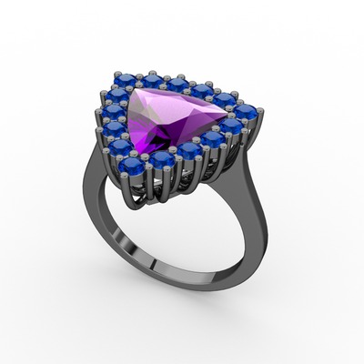 Ametist ve lab safir 925 ayar siyah rodyum kaplama gümüş yüzük