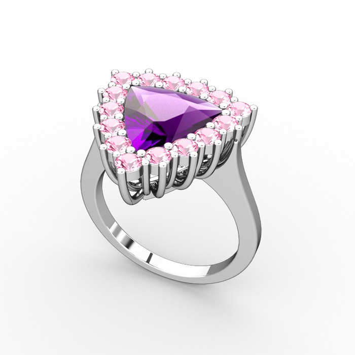 Ametist ve pembe kuvars 14 ayar beyaz altın yüzük