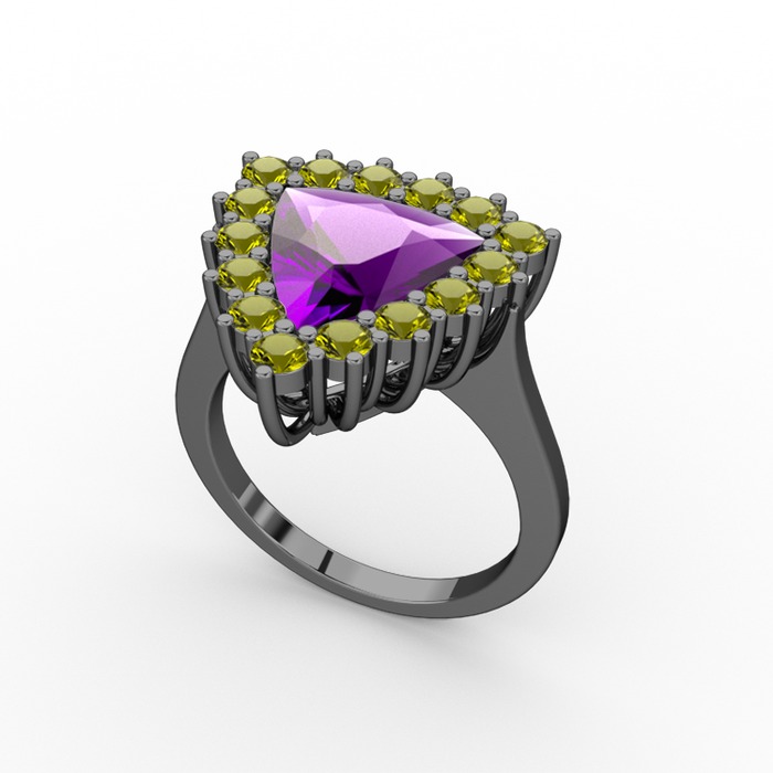 Ametist ve peridot 925 ayar siyah rodyum kaplama gümüş yüzük