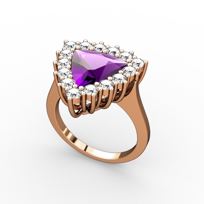 Ametist ve pırlanta 18 ayar rose altın yüzük (0.9 karat)