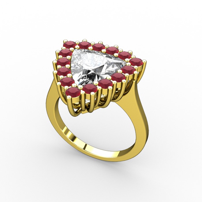 Beyaz zirkon ve kök yakut 925 ayar altın kaplama gümüş yüzük