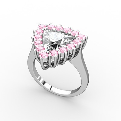 Beyaz zirkon ve pembe kuvars 14 ayar beyaz altın yüzük