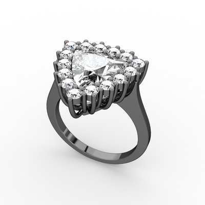 Beyaz zirkon ve pırlanta 925 ayar siyah rodyum kaplama gümüş yüzük (0.9 karat)
