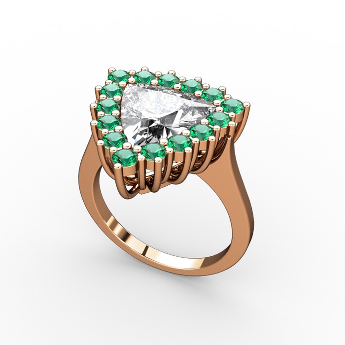 Beyaz zirkon ve yeşil kuvars 14 ayar rose altın yüzük