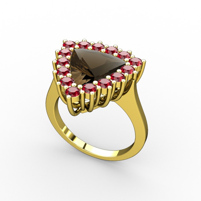 Dumanlı kuvars ve garnet 14 ayar altın yüzük