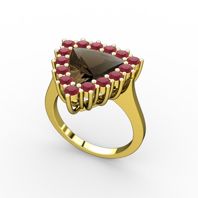 Dumanlı kuvars ve kök yakut 14 ayar altın yüzük