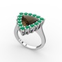 Dumanlı kuvars ve kök zümrüt 14 ayar beyaz altın yüzük