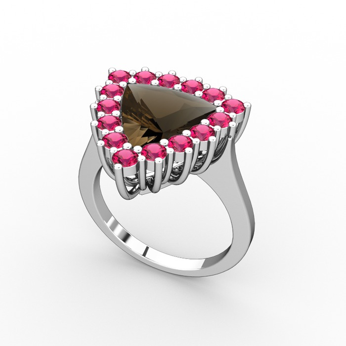 Dumanlı kuvars ve rodolit garnet 18 ayar beyaz altın yüzük