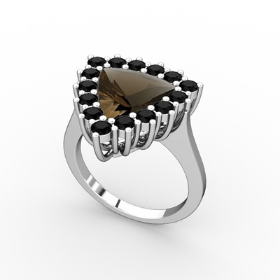 Dumanlı kuvars ve siyah zirkon 8 ayar beyaz altın yüzük