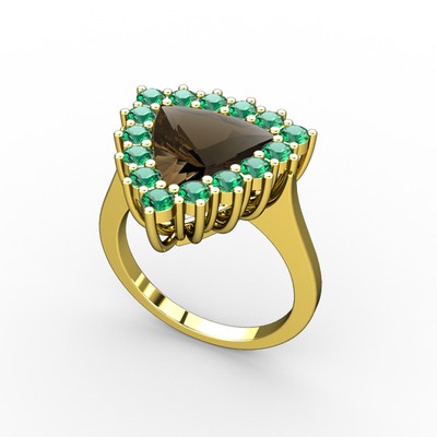 Dumanlı kuvars ve yeşil kuvars 925 ayar altın kaplama gümüş yüzük