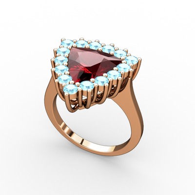 Garnet ve akuamarin 8 ayar rose altın yüzük