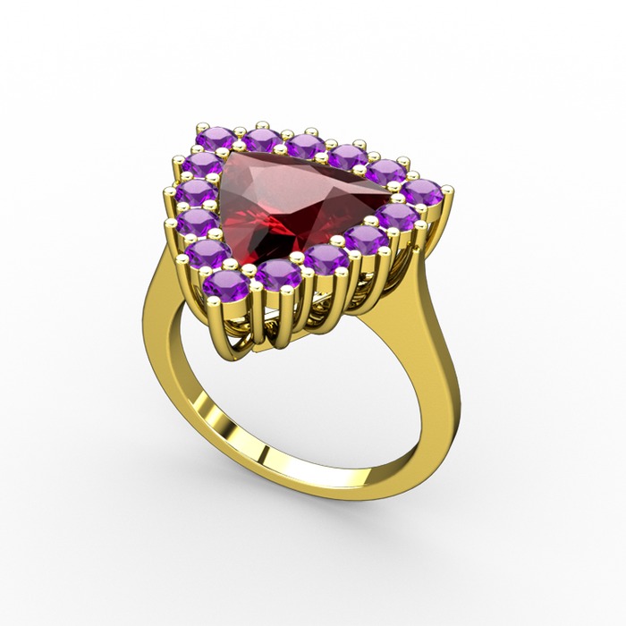 Garnet ve ametist 925 ayar altın kaplama gümüş yüzük