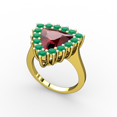 Garnet ve kök zümrüt 18 ayar altın yüzük