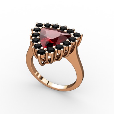 Garnet ve siyah zirkon 14 ayar rose altın yüzük
