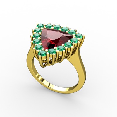 Garnet ve yeşil kuvars 14 ayar altın yüzük
