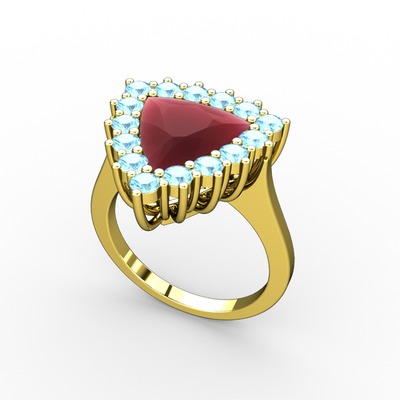 Kök yakut ve akuamarin 925 ayar altın kaplama gümüş yüzük
