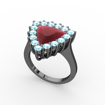 Kök yakut ve akuamarin 925 ayar siyah rodyum kaplama gümüş yüzük