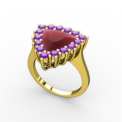 Kök yakut ve ametist 18 ayar altın yüzük